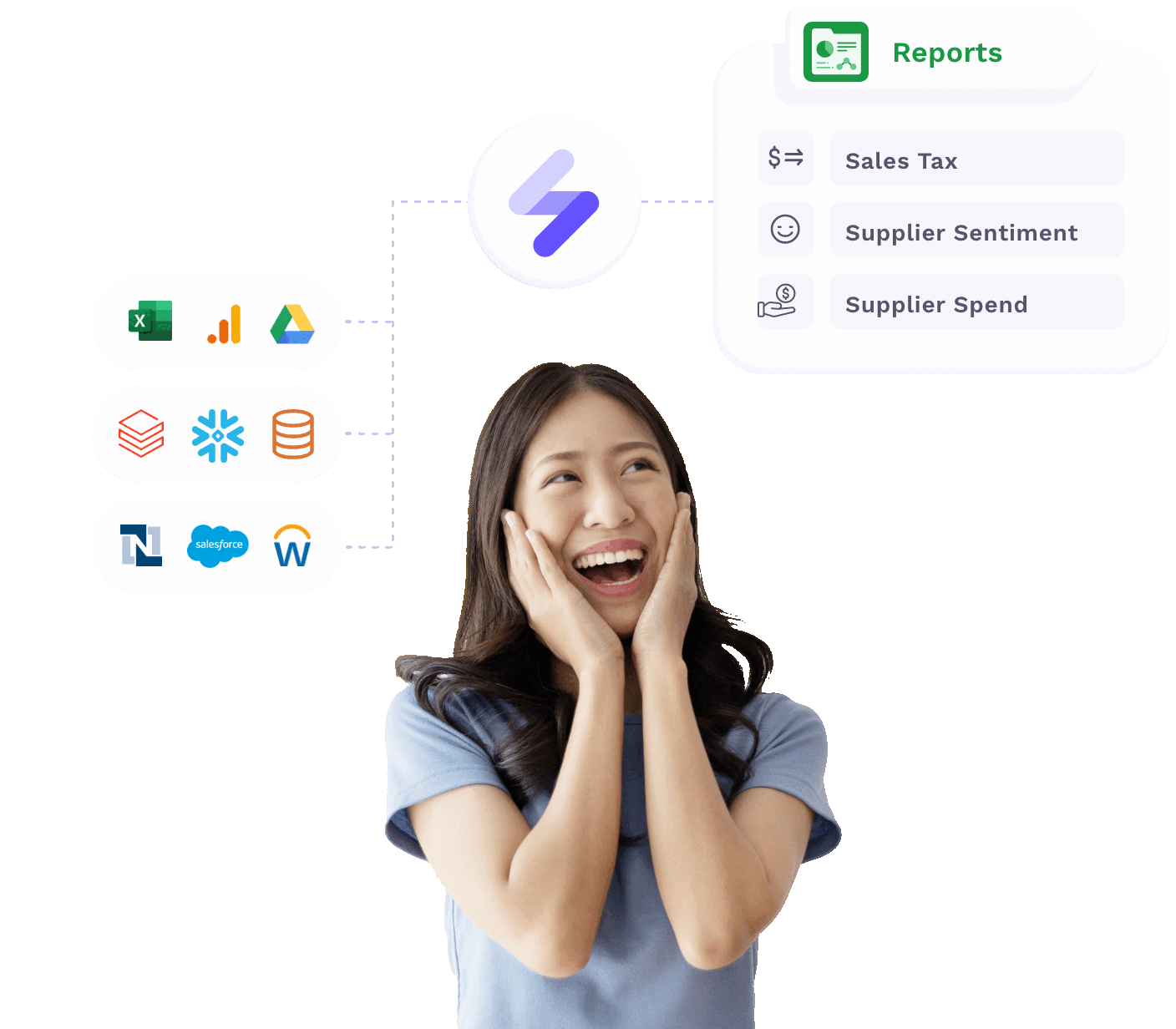 Seamlessly connect and pull data from any source with hundreds of connectors. Clean, prep and analyze data with our innovative Gen AI and visual workflow designer. Deliver insights and alerts to hundreds of apps, as well as Slack, MS Teams, Excel, email, databases, and dashboards—on schedule or on-demand.